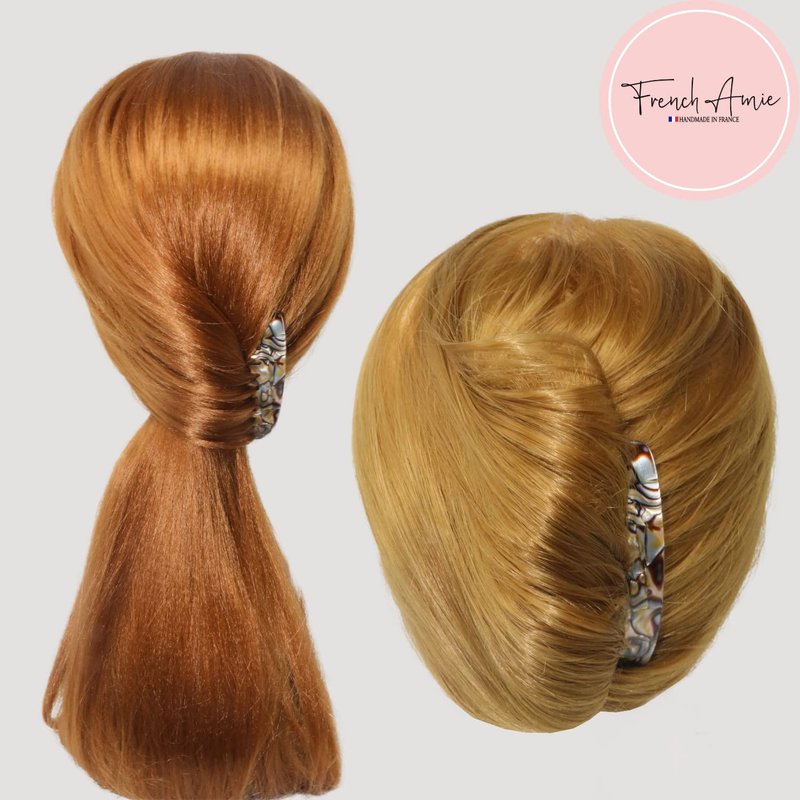 The French Amie Hair Collection provides a variety of accessories handmade in Europe. All products are perfectly polished for a splendid smooth finish and even edges. This assortment consists of a variety of products ranging from hair combs, clips, barrettes and more. The unique designs complement any hair type from short to long, fine to thick, and straight to curly: a versatile collection for extraordinary experience. French Amie prides itself for using cellulose-acetate that gives the piece its durable and luxurious definition.