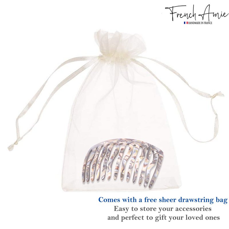 - The handmade French 13 teeth side comb can help you style quickly when you are in a hurry. It is comfortable, easy to slide in, and lies flat on your head without pulling, twisting or damaging your hair. The size of comb is approx. 3.5 inch x 2.5 inch(9 cm x 6 cm)