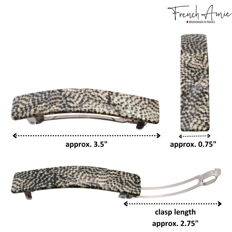 - This unique French automatic barrette for girls and women are accentuated with a solid metal clasp, a key piece to be kept in your hair accessories. The size of barrette is approx. 3.5 inch x 3/4 inch (9 cm x 2 cm). It gives you quick styling solutions, no slip grip, do not twist, pull or damage your hair.