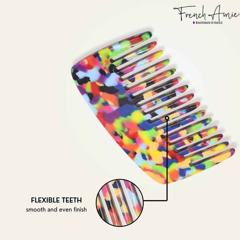 French Amie Pocket Comb Multicolor Small 4 Inch Cellulose Handmade Smooth Tip Wide Tooth Non Static Hair Comb