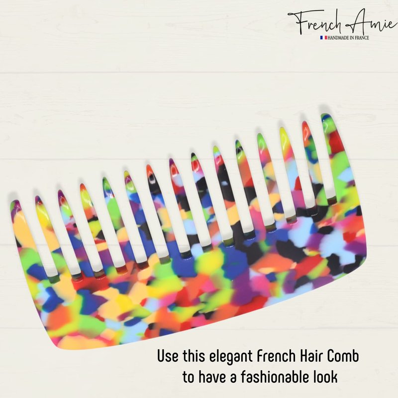 - The handmade French multi-colored comb can help you style quickly when you are in a hurry. These are very sturdy, durable, and have a luxurious cellulose finish. The size of comb is approx. 4 inch x 2.5 inch (10 cm x 6 cm).
