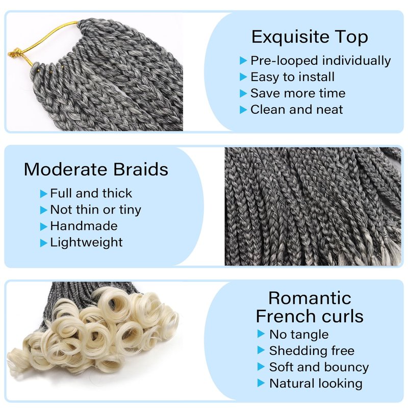 - Upgraded Crochet Hair:French curl crochet braids is made of box braids crochet hair with loose french curls,based from french curl braiding hair,new trendy crochet hair for black women,touched feels like human hair crochet hair