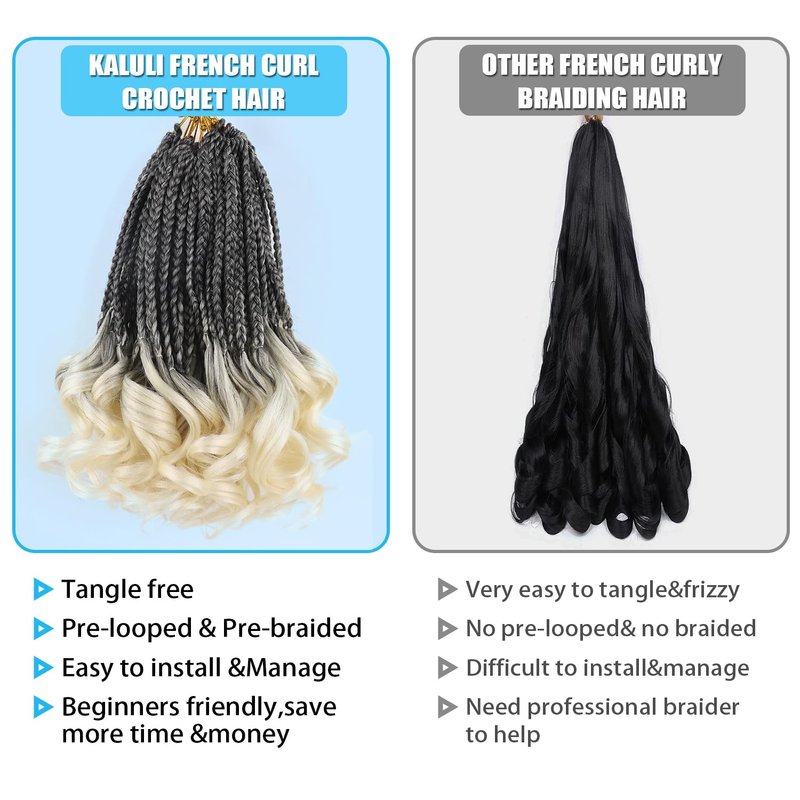 - Quick to install,Beginners Friendly:French curl crochet hair is different from french curl braiding hair,install french curl braiding hair takes a lot of time,easy to tangle;Pre looped french curl crochet braids save time and money,more easy and natural