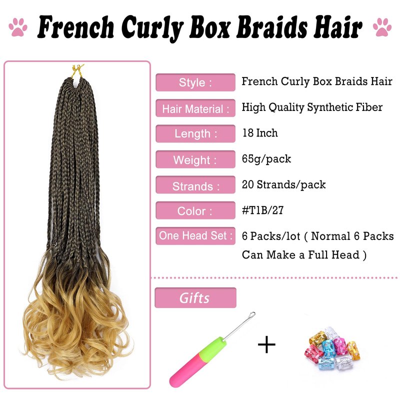 French Curl Crochet Braids 18 Inch 6 Packs Goddess Box Braids Crochet Hair Pre Looped French Curly Braiding Hair Crochet Box Braids With Curly Wavy Ends Synthetic Hair Extensions (#1B/27)