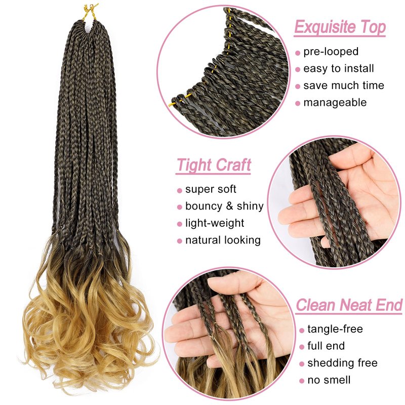 - Unique Design: This hair is different from the regular box braids, crochet box braids with loose wavy ends, beautiful and fashion, make you unique and special, boho protective hairstyle,wearing it, you will get many compliments.