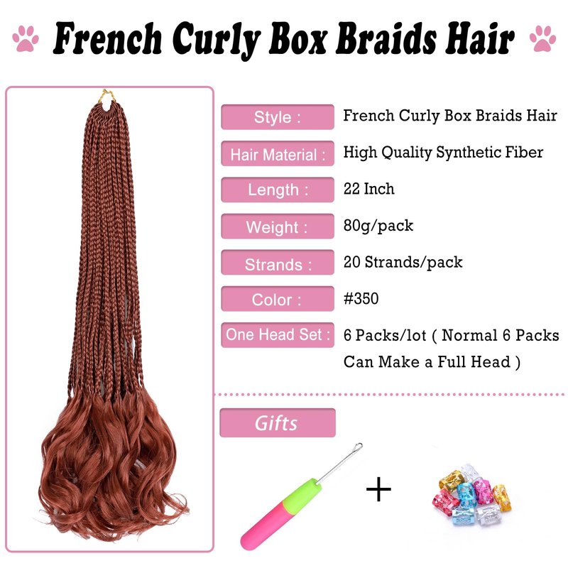 French Curl Crochet Braids 22 Inch 6 Packs Goddess Box Braids Crochet Hair Pre Looped French Curly Braiding Hair Cooper Red Crochet Box Braids With Curly Wavy Ends Synthetic Hair Extensions (#350)