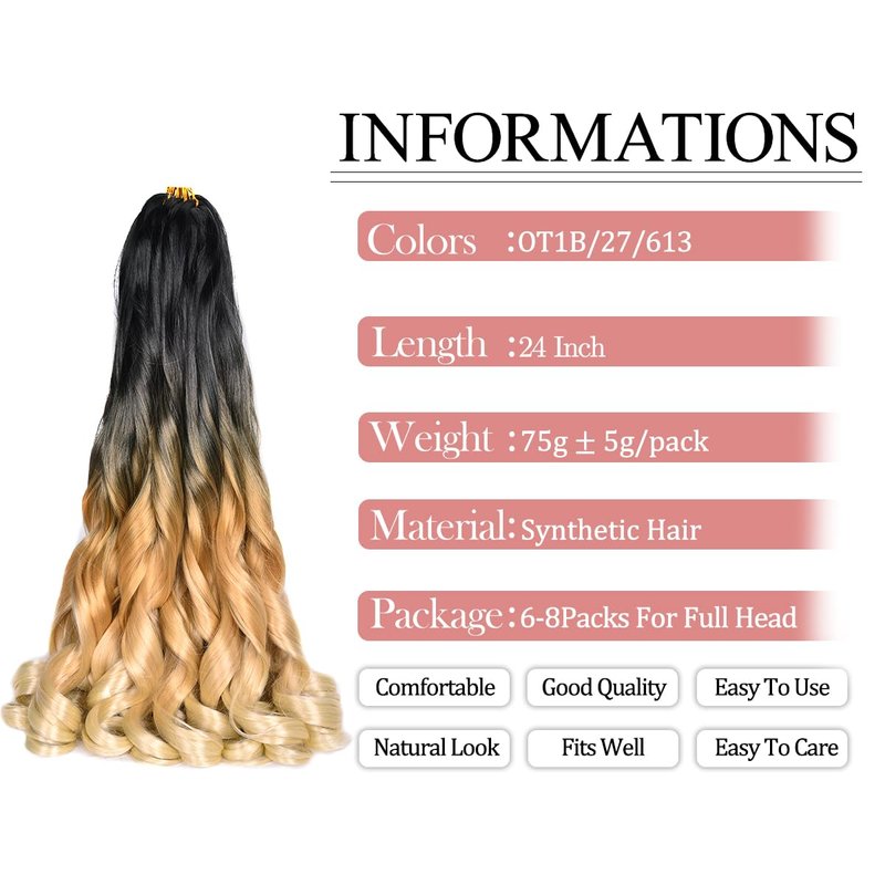 - 【Premium quality material】French curl braiding hair made of premium quality synthetic fiber,this unique french curly braiding hair extensions is more natural looking and super soft as human hair, very fresh and comfortable to wear.