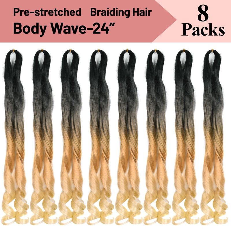 French Curly Braiding Hair 24 Inch 8 Packs Soft Braiding Hair Pre Stretched Loose Wavy Braiding Hair Synthetic Hair Extensions for Black Women (24 inch 8 packs, OT1B/27/613)