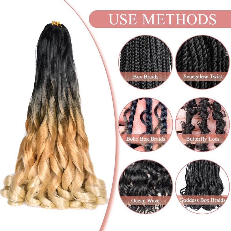 - 【Easy To Install,Variable Hairstyle】Loose Wavy Braiding Hair is multipurpose,french curls braiding hair is easy to separate quick to braid,twist and install,don't easy to tangle,beginners friendly.in addition to being used directly as straight curls,Perfectly customize the hairstyle you like:Box Braid,Senegalese Twist Crochet Hair, Butterfly Locs Crochet Hair ,Goddess Locs Crochet Hair,nu locs and more