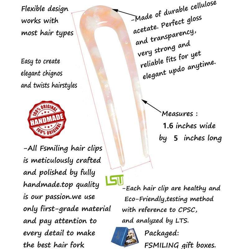 - WOMEN HAIR FORK MATERIA: These french hair pin are made of quality celluloid acetate,smooth and durable,flexible and strong,a non-petroleum based plastic derived from plants that has been found to create less static in hair;these french hair fork do not easy to break.Comfortable light hold without damage hair.