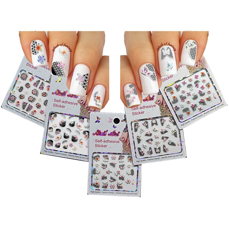- 3D NAIL ART LACE ACCENT STICKERS - adorable and colorful french lace designs with flowers and rhinestones embellishments 5 pack