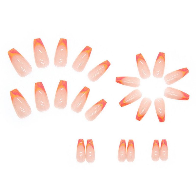 French Tip Press on Nails Medium Coffin Orange Fake Nails Ballerina Ombre Acrylic Nails Glossy Glue on Nails Artificial Nails Orange Designs Stick on False Nails for Women Girls Manicure 24pcs