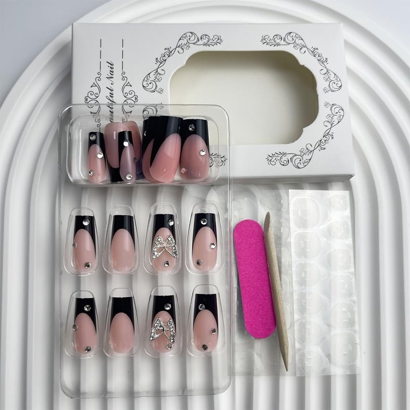 - Package Contains: You will get 24 pieces black press on nails in 12 sizes, 1 piece mini nail file, 24pieces nail jelly stickers and 1 piece wooden stick for removing false nails tips. No need to buy other things, you can get the nail salon-like effect.