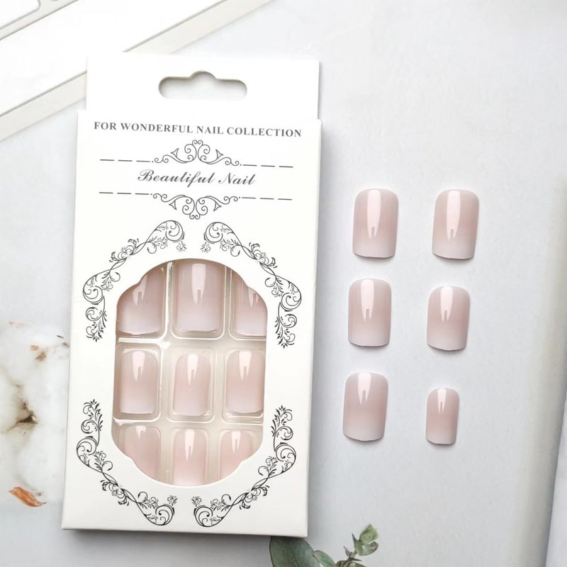 3. Pink gradient false nails can easily trim and file in any length and shape you like.