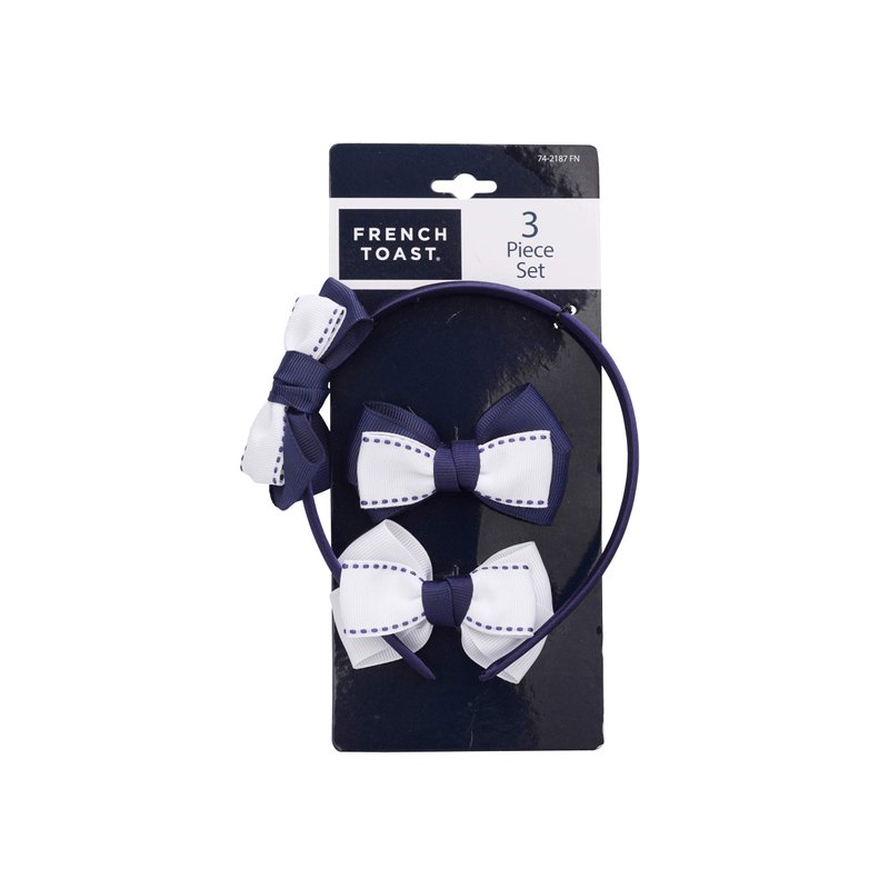 French Toast Girl's School Uniform Headbands and Bow Clips, 3-pack, Navy