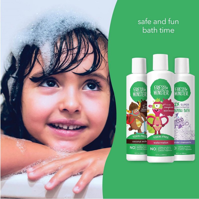 - Coconut Milk Shampoo and Conditioner: The US-made Fresh Monster gift box includes a coconut milk 2-in-1 hair shampoo and conditioner that uses natural, effective cleansers to gently clean and condition your kids' hair while leaving them shiny and soft