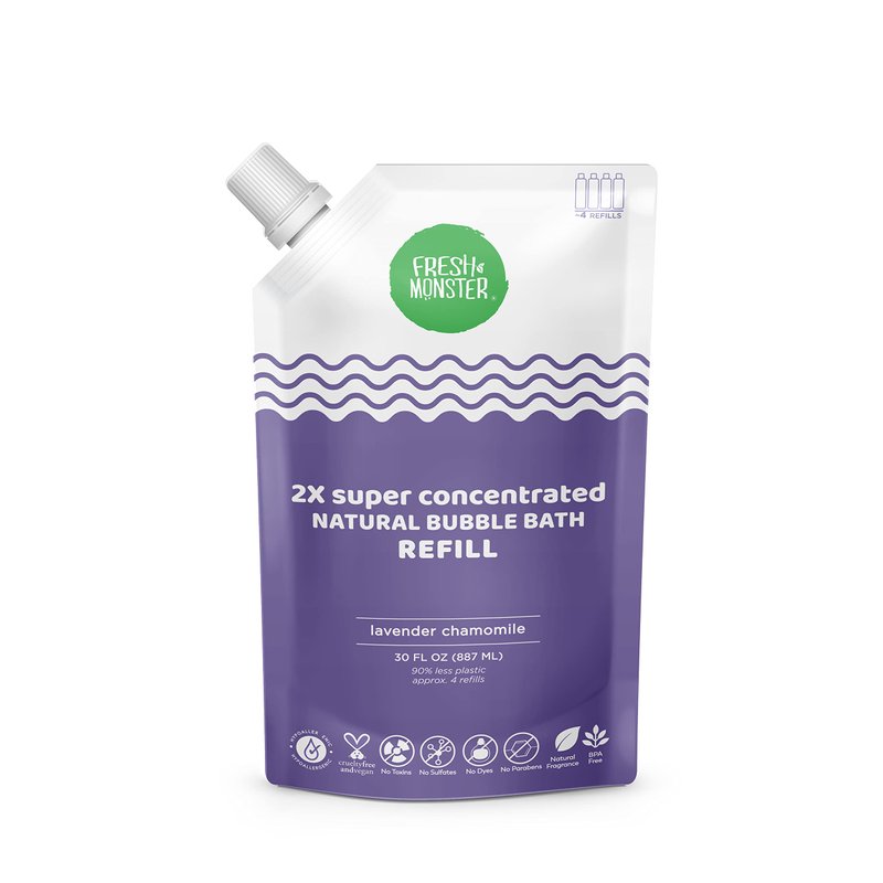 - Super Concentrated Bubble Bath Refill: This 32 oz pouch refills up to 4 bottles of Fresh Monster Bubble Bath Kids (savings of $30!)