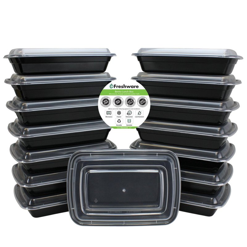Freshware Meal Prep Containers [15 Pack] 1 Compartment with Lids, Food Containers, Lunch Box | BPA Free | Stackable | Bento Box, Microwave/Dishwasher/Freezer Safe, Portion Control (28 oz)
