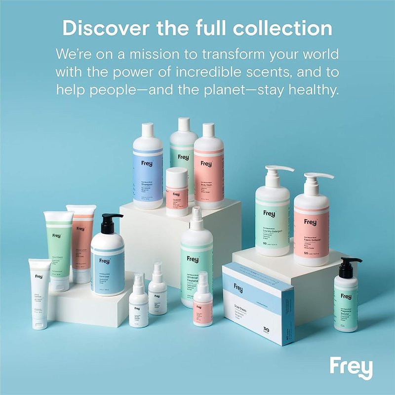 Step into a world of ultimate laundry luxury with FREY's Classic Package. Immerse your clothes in divine fragrances from top scent havens. Our magical combo of washing detergent and natural dryer sheets creates captivating aromas that'll have you swooning. Experience a laundry revolution as our liquid detergent and dryer sheets team up. Say goodbye to stiff fabrics and hello to softness and freshness that'll set you free. No more annoying static cling, just pure plush delight. FREY's Classic Package is no ordinary cleaning setup. With a whopping 16-ounce detergent bottle for 50 concentrated loads, your laundry journey never hits a snag. Plus, we throw in 40 fabric sheets for endless freshness. We care about our planet too. That's why our anti-static sheets and detergent are crafted from natural, biodegradable ingredients. Pamper your clothes guilt-free, respecting nature's balance. Trust FREY for reliable, exceptional laundry care. Our detergent and dryer sheets go beyond cleanliness. Every use leaves your clothes emanating delightful fragrances and our commitment to excellence. Welcome to the FREY revolution!