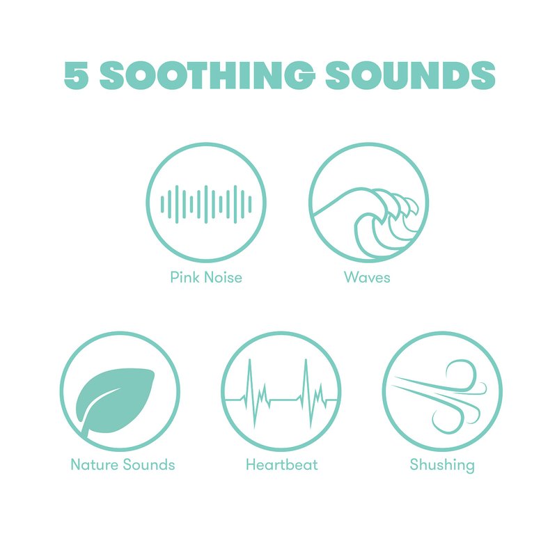 - 5 SOOTHING SOUNDS: Features 5 soothing sounds: shushing, heartbeat, waves, nature sounds, and pink noise for sleep making it an ideal white noise sound machine sleep soother for babies and kids.