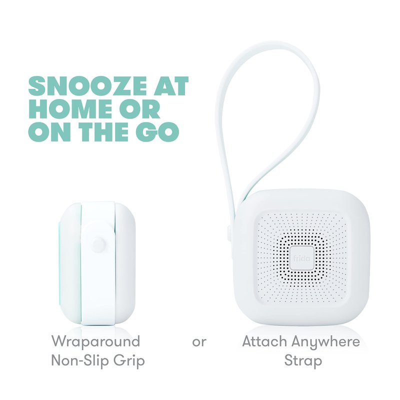 Frida Baby 2-in-1 Portable Sound Machine for Baby + Nightlight, White Noise Sound Machine for Baby with 5 Soothing Sounds & 3 Nightlight Modes, Travel Sound Machine Attaches to Strollers, Car seats