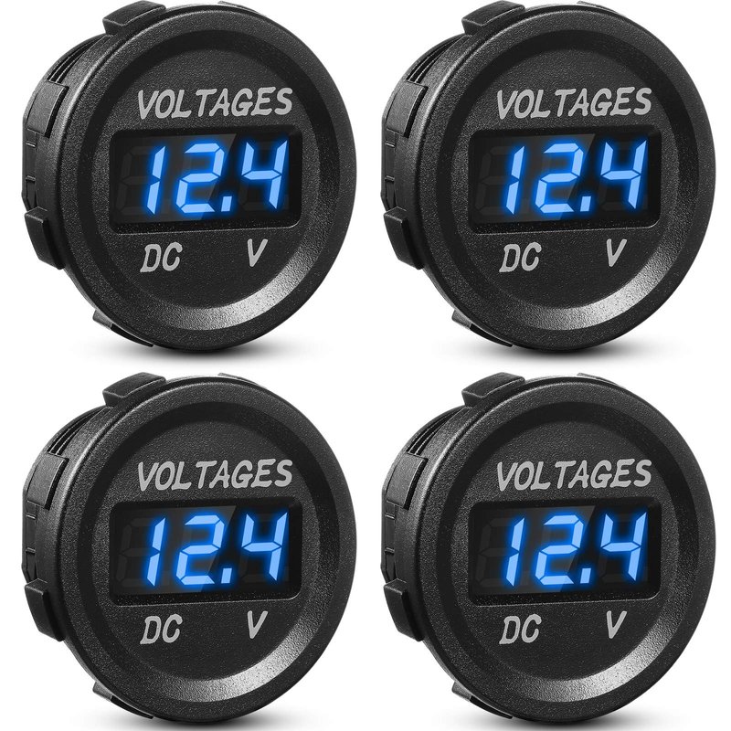 Frienda 4 Pieces DC 12V Car Voltage Gauge LED Display Waterproof Voltmeter Digital Round Panel Voltmeter Compatible with Vehicle Motorcycle Truck Camper Caravan ATV UTV Car Boat (Blue)