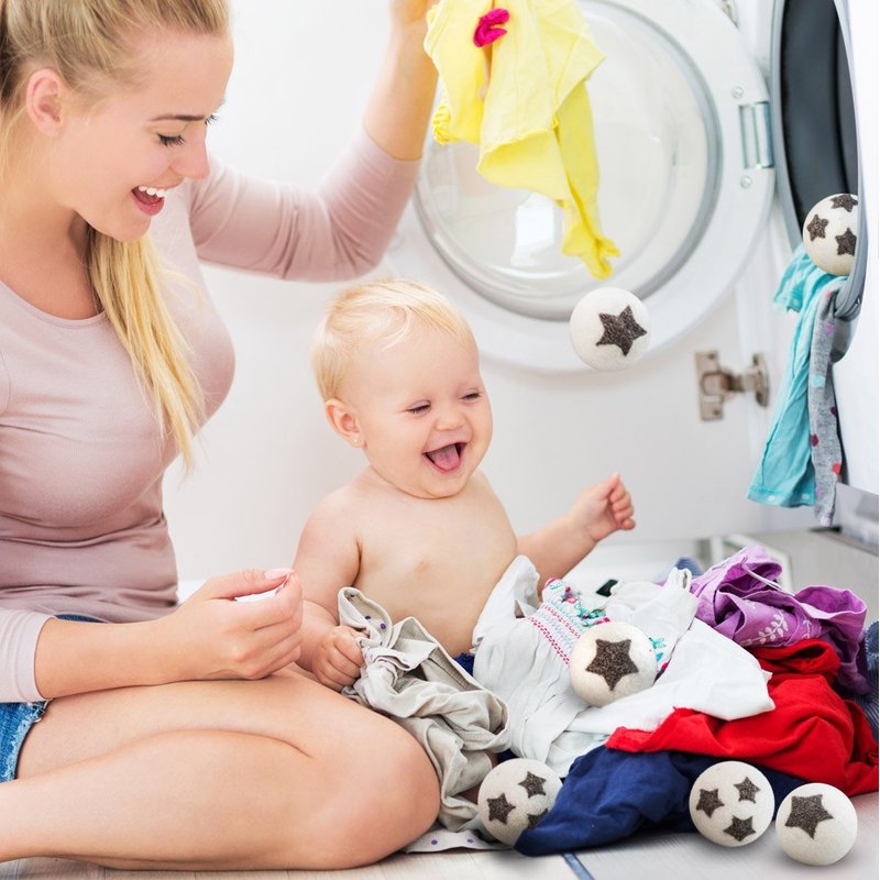 Friendsheep Eco Dryer Balls will soak up moisture in your dryer by absorbing up to 30% of their weight in water. Plus, their movement in the dryer will help separate your clothes and sheets allowing air and heat to circulate and dry them faster. As your laundry dries, the dryer balls will fluff and evenly redistribute humidity in the dryer eliminating wrinkles, reducing static cling and providing a softer feel to your fabrics. The result is a quicker drying time, softer and more manageable laundry, all with less energy used, and more money in your pocket!