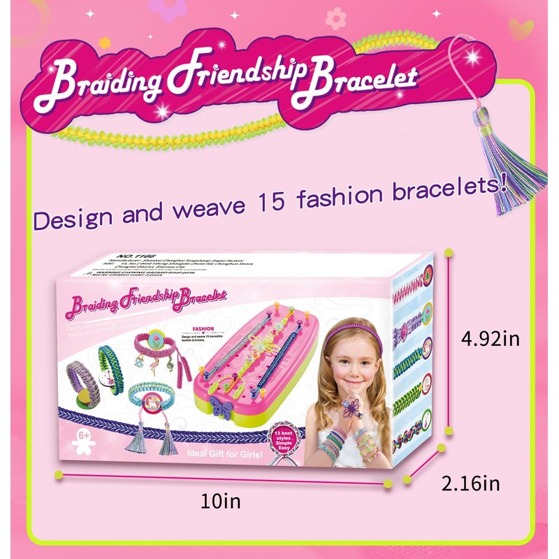 - Share Creation and Spread Friendship: Say goodbye to screen time and hello to hours of hands-on fun. Toys for girls 10-12. This bracelet machine is not just a toy, it can also cultivate teenage girls' creativity. This string bracelet making kit is also 8 year old girl birthday gift and a great activity for craft party or slumber party. Girls can make bracelets with friends, or share the fun of making and the pride of wearing DIY jewelry with her BFF!