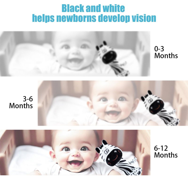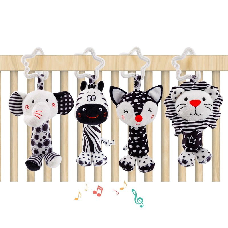 - 【Promote Visual and Auditory Development】: Frilida black and white series of plush baby toys has four animal patterns of fox, lion, elephant and cow. The cute shape can effectively attract baby's attention and help them exercise hand-eye coordination, hearing and visual perception while playing by touching, pulling and shak.
