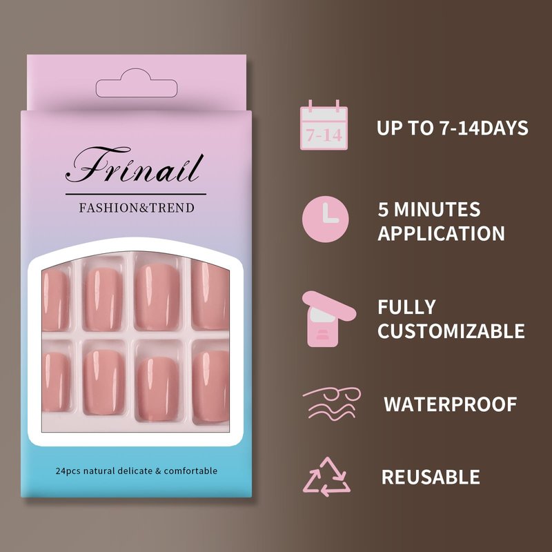 - šćPACKAGE INCLUDESć: You will get 24pcs different size square press on nails short with designs, 1pc nail file, 24pcs adhesive nail tabs, and 1pc wooden stick for removing false nail tips.Frinail false nails fit all nail bed