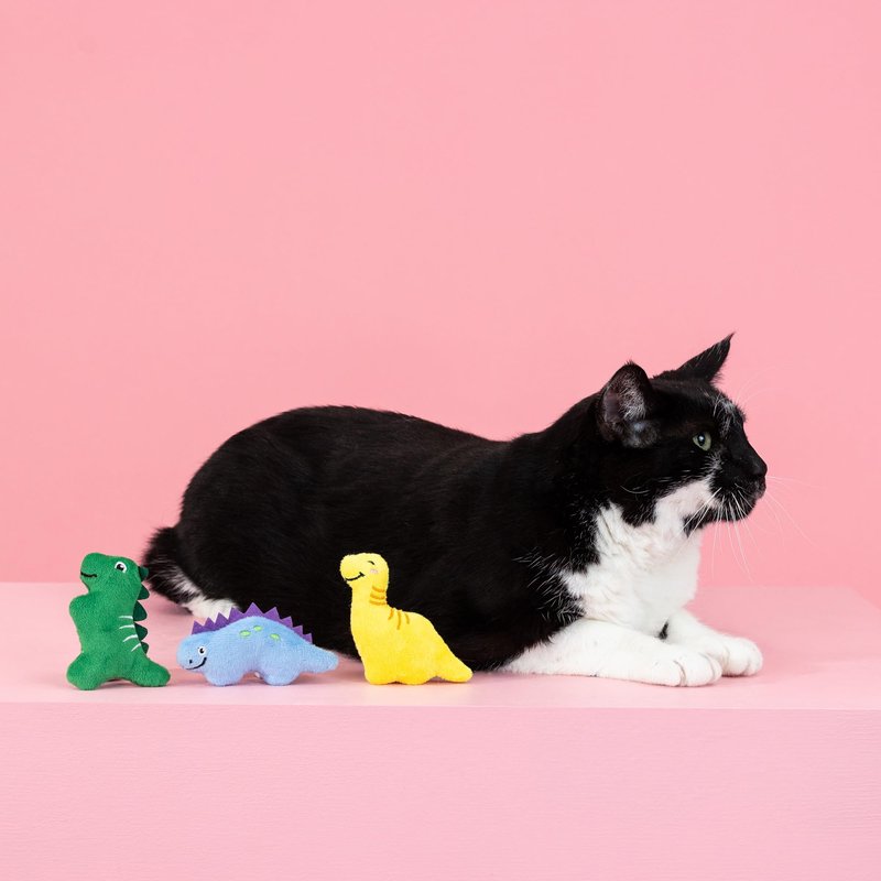 - Perfect for cats of all sizes, Each toy is approximately 3” x 3” ( GREEN DINO: 3.5" x 3", YELLOW DINO: 3.5" x 3.5", BLUE DINO: 2" x 4")