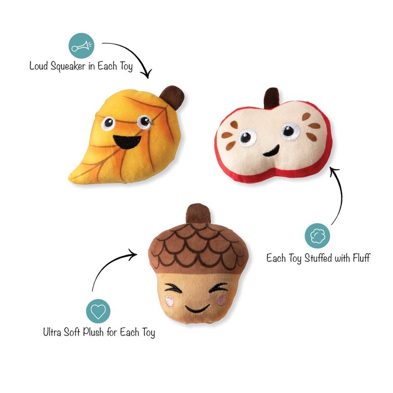 Fringe Studio Plush Dog Toy, Falling for You, 3 Piece Set, Pet Shop Collection (289540)
