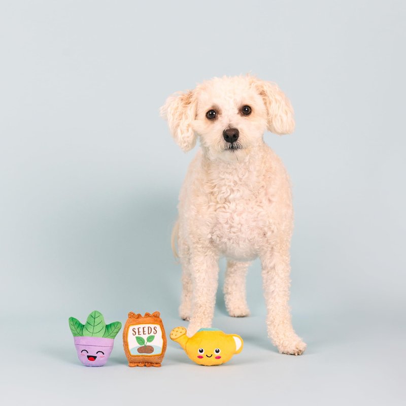 - Each toy is approximately 3.25” x 4” ( SEEDS: 4" X 3", WATERING CAN: 2.5" X 5", PLANT: 3.75" X 4")