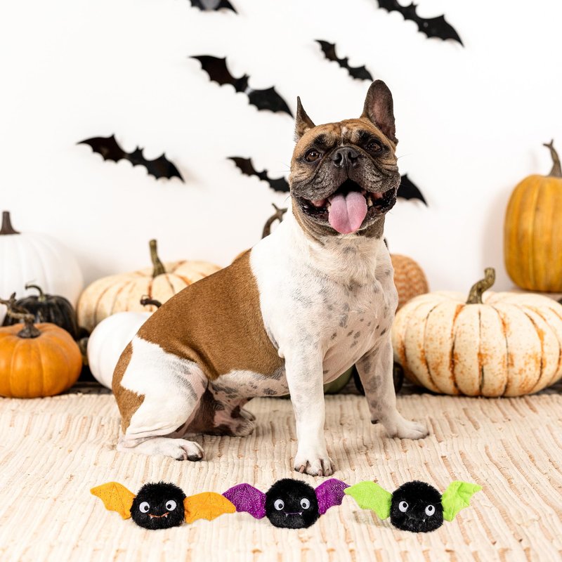- Toys are approximately : Orange Bat: 4" h x 4.75" w Purple Bat: 4" h x 4" w Green Bat: 4" h x 3.75" w
