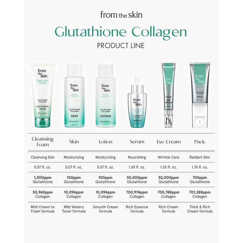 - EMBRACE TRADITION AND INNOVATION: From the Skin Korean Skincare, a brand synonymous with enduring health and youthful radiance, we bring you a skincare masterpiece. Approved by sensitivity skin irritation tests, our Glutathione Collagen Cleansing Foam is suitable for both oily and dry skin types. Committed to delivering perfection in cleansing, we stand at the intersection where age-old wisdom meets contemporary science to tackle the very essence of skin issues