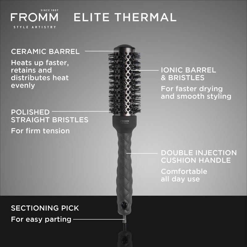 Fromm Elite Thermal Ceramic x Ionic 1.25" Round Brush for Expert Blowouts and Faster Hair Drying | Roller Hairbrush for Anti-static Styling, Smoothing, Straightening and Shine