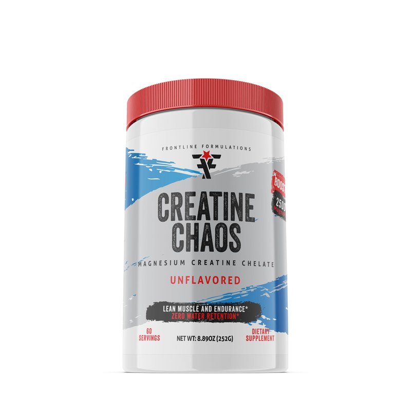 FRONTLINE FORMULATIONS Creatine Chaos, Promotes Lean Muscle Growth, Unflavored, Aids Muscle Recovery, Post-Workout Supplement, Veteren Owned and Operated (60 Servings, Magnesium Creatine Chelate)