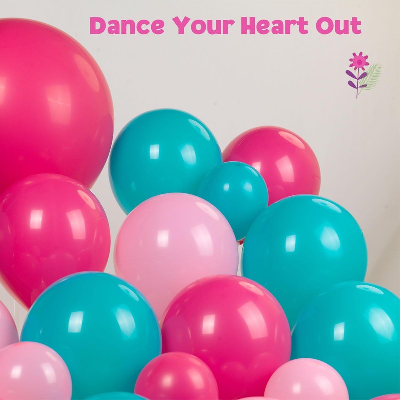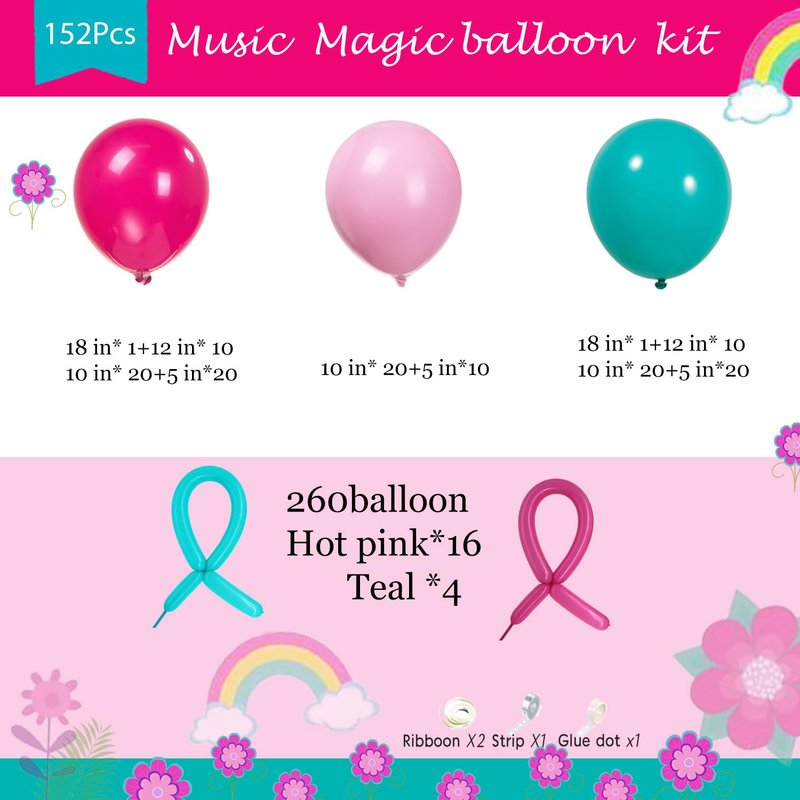 - 【Hot pink balloon decoration】Includes the following 152 balloons in different sizes of 5/10/12/18 inches. We choose rich tropical color and Hot pink ,Teal Long rubber balloons as the theme palette, add (glue dot/plastic arches/ribbons) tools, allowing you to create a cheerful and vibrant atmosphere, suitable for any theme party in summer.