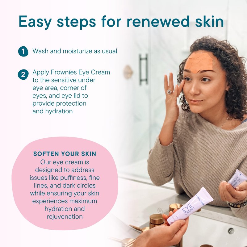 - EASY APPLICATION - Apply the Frownies eye treatment to the sensitive under eye area, corner of eyes, and eyelid to provide protection and hydration that keep the skin around your eyes looking healthier, less puffy and less wrinkled