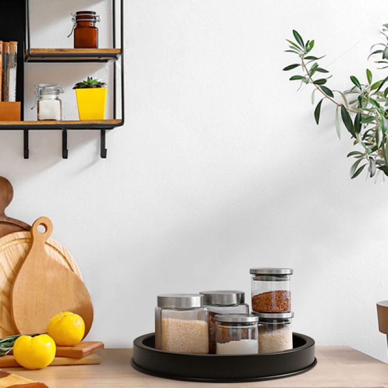 - 【High-Quality Black Round Tray】FRTIM black round decorative serving tray is made of premium iron metal material. Durable, lightweight but sturdy. The black circle tray flows is very well, the concave design of the bottom edge makes it easy for you to hold the tray firmly when moving it. And covered on the bottom with foam padding to protect your tabletop.