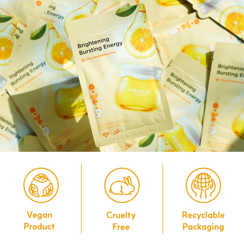 Introducing the FRUDIA Citrus Mask, a standout in Korean skincare. Packed with key ingredients like Mandarin Peel Extract, Vegan Vitamin C, and Mela-Zero, these sheet masks help achieve smooth and refreshed skin.