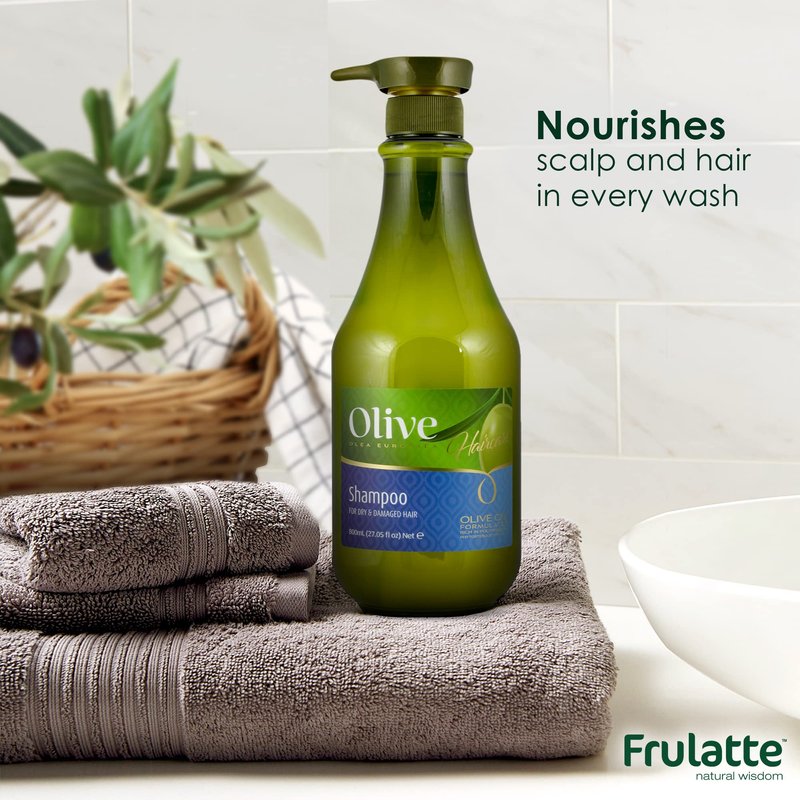 Frulatte Olive Shampoo with Organic Olive Oil | Rich in Vitamins A, D & E Hydrating Shampoo for Dry Damaged Hair | Paraben Free Shampoo | Natural & Deep Cleansing Hair Shampoo, 27 fl oz