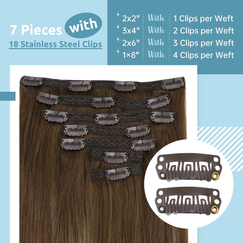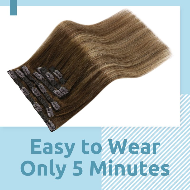 Multi-Choice -- Fshine clip in human hair extensions with different colors including black, brown, blonde, balayage and highlight , 12"-26" sizes available.