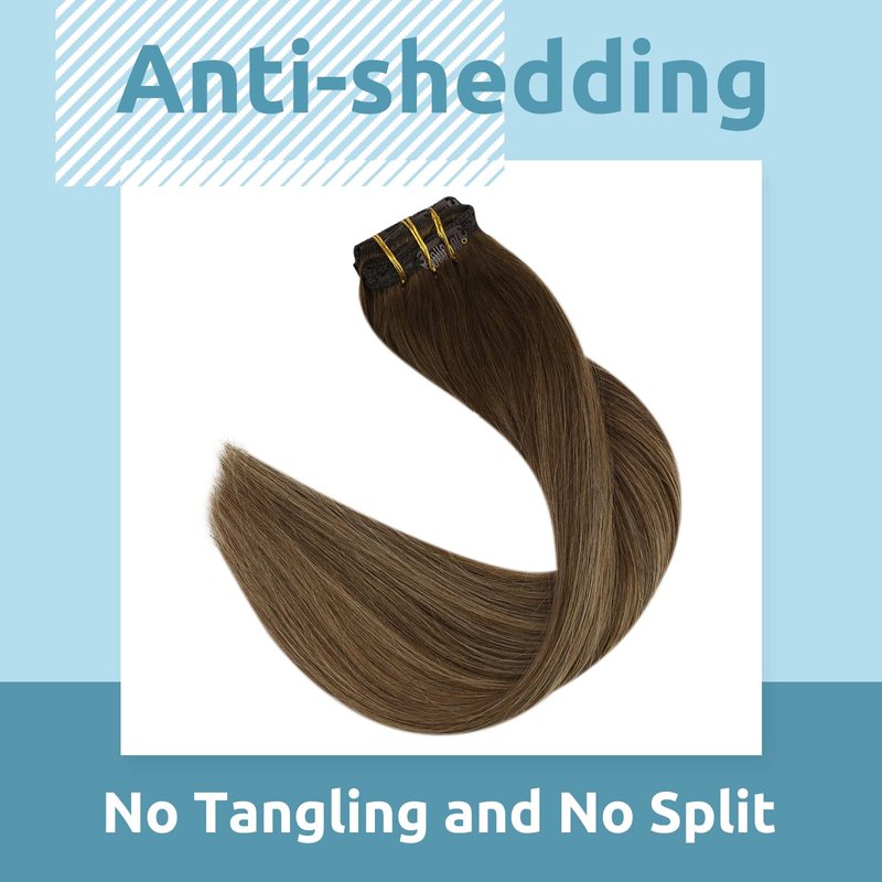 Fshine Clip In Hair Extensions Real Human Hair Balayage Clip In Extensions Medium Brown Mixed Caramel Blonde 18 Inch Straight Clip In Extensions Human Hair For Women 120g 7pcs