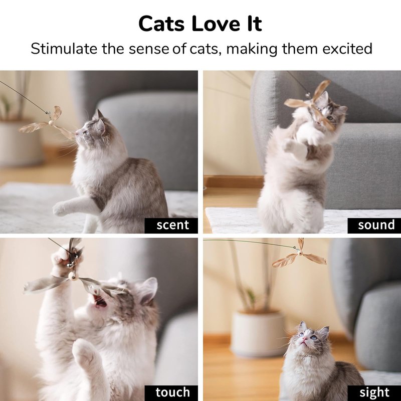 ABOUT FUKUMARU: FUKUMARU focus on providing pretty and practical pet supplies. Our pets shook their tails every day welcome us home ,quietly accompanying us alongside the sofa and loving us all their lives without any requirement. FUKUMARU designed to think a little more for them. Package Include: 1. Cat Wand Teaser*1 (Copter shape) 2. Feather Replacement*4(normal feather)