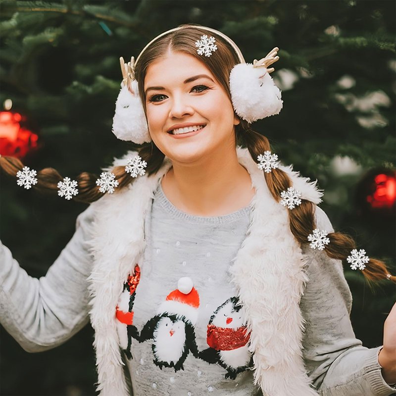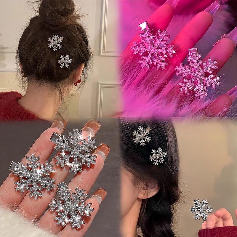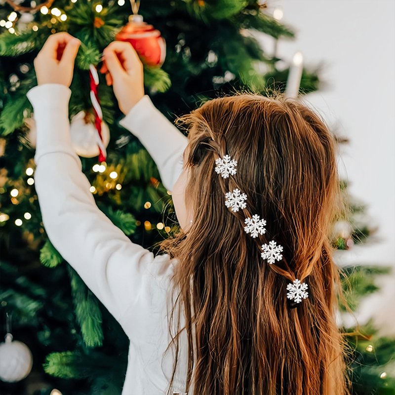 - Snowflake Hair Clips: You'll get 10 or 8 snowflake hair clips with rhinestone and pearl designs that can be paired with your Christmas outfit to enhance your Christmas look.