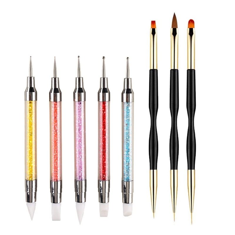 - 【8PCS Professional Nail Art Accessories】 Includes 5pcs Nail Art Sculpture Pen Dotting Tools and 3pcs Double Ended nail art painting brushes, helps you to make your own nail art styles.