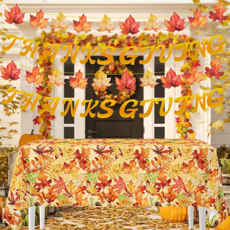 - Easy to Clean: Our Thanksgiving maple leaf tableware set is waterproof, oil-proof, and stain-resistant, protecting your rectangular table from spills and stains. Cleanup is a breeze—simply roll up the tablecloth and dispose of it after the event, giving you more time to enjoy with family and friends.