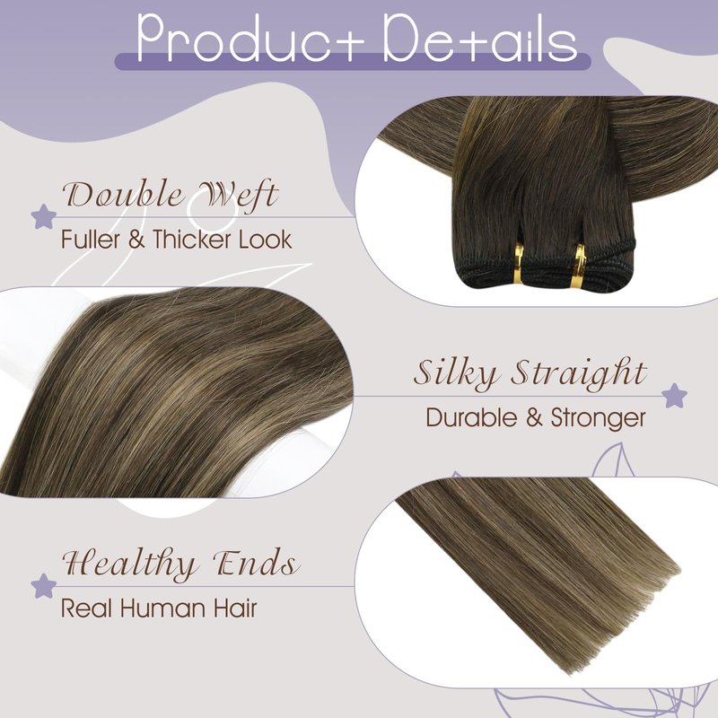 - 【High-quality Human Hair Material】 Weft hair extensions are made from real human hair,ensuring that the hair is soft, shiny, and tangle-free. Sew in hair blend seamlessly with your natural hair, creating a natural look.