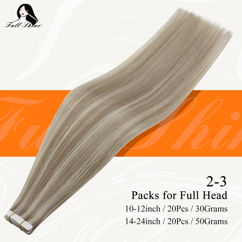 Full Shine Tape in Hair Extensions Human Hair 18 Ash Blonde Highlight 613 Blonde Double Sided Tape in Hair Extensions 12 Inch Invisible Straight Hair Extensions Tape in 30G 20Pcs Tape in Extensions